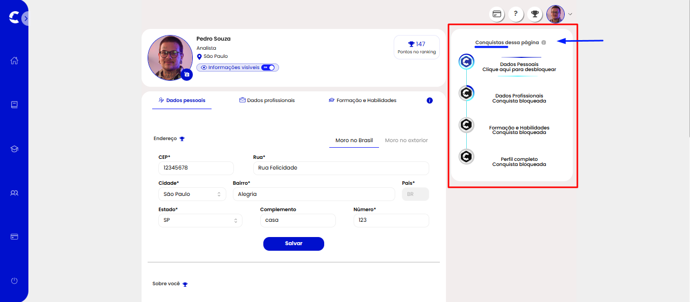 A medida que você preenche esses dados em nossa plataforma, você conquista pontos.